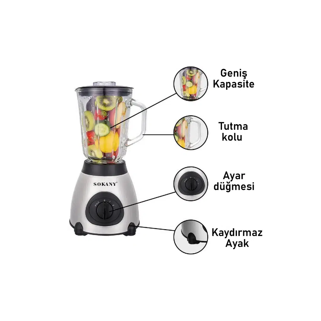 | Etiketler | Sokany Paslanmaz Çelik Gövdeli Profesyonel Cam Blender & Öğütücü Seti – SK-148S |